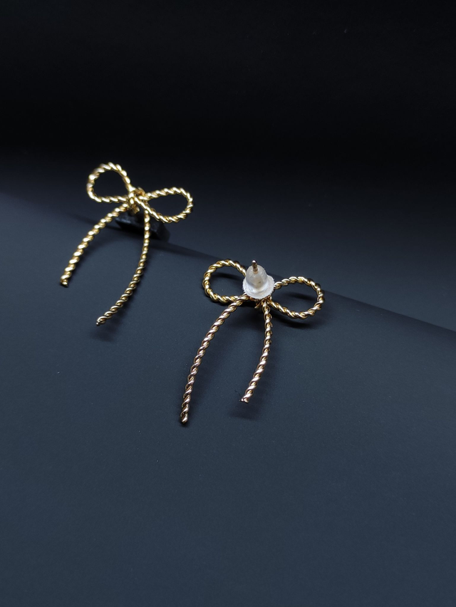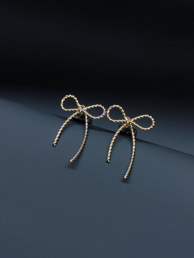 Diese zarten Schleifen-Ohrringe in Gold vereinen zeitlose Eleganz mit verspielter Leichtigkeit. Das feine Design schmiegt sich dezent an das Ohr und setzt feminine Akzente, ohne aufdringlich zu wirken. Die filigrane Schleifenform symbolisiert Anmut und Stil und macht die Ohrringe zu einem vielseitigen Begleiter – perfekt für den Alltag ebenso wie für besondere Anlässe.